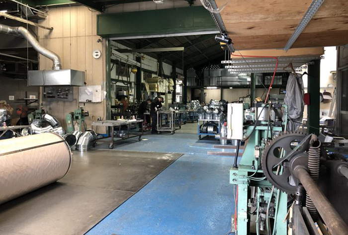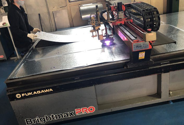 弊社は約300坪ほどある工場でさまざまな機材を使用し、1枚の板からダクト製作を行っております。